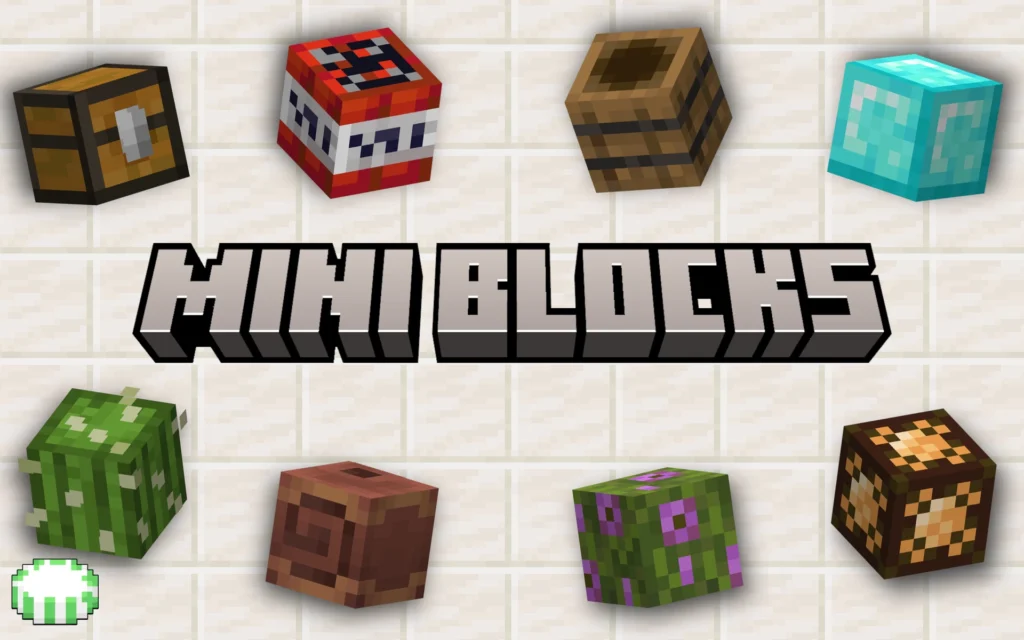 Addon Mini Blocks là một bản mod đặc biệt cho phép người chơi thu nhỏ các khối vuông cơ bản trong Minecraft thành kích thước tí hon. Thay vì một khối lớn chiếm toàn bộ không gian, bạn sẽ có những phiên bản mini cực kỳ đáng yêu và chi tiết.