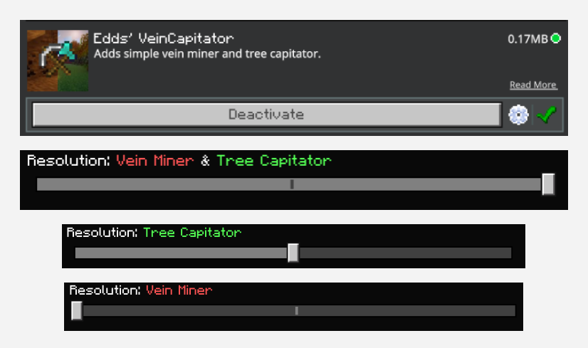 Ngoài ra, một số phiên bản nâng cao của Vein Capitator còn cho phép người chơi thêm vào các loại khối từ các addon khác. Điều này tạo ra một sự linh hoạt tuyệt vời, biến nó thành một công cụ đa năng trong mọi bộ sưu tập mod của game thủ.