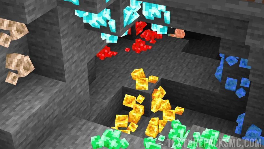 Texture pack này không chỉ làm game đẹp hơn mà còn giúp người chơi dễ nhận diện quặng khi đào mỏ, đặc biệt phù hợp với những ai yêu thích xây dựng, sinh tồn và khám phá theo phong cách fantasy trong Minecraft.